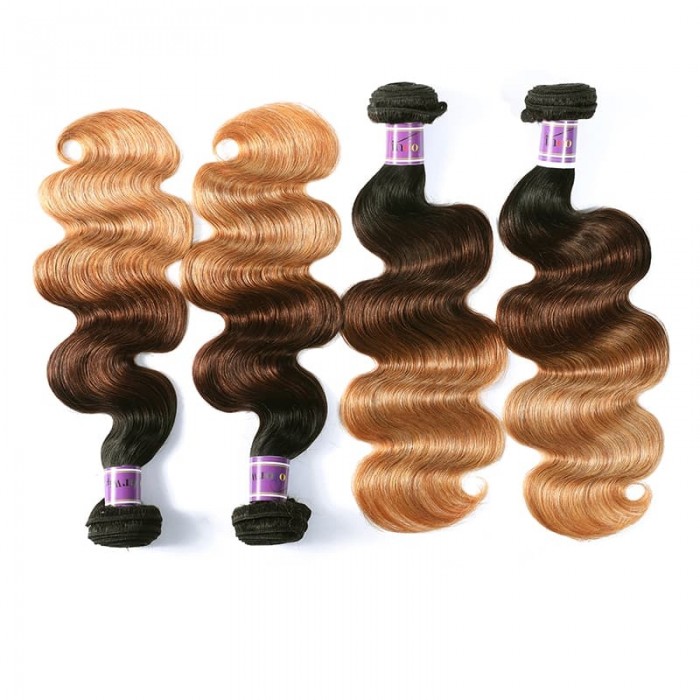 Incolorwig 100% Brazilian Human Hair 4 Bundles Deals #T1B427 Ombre Color Body Wave Human Hair Weave