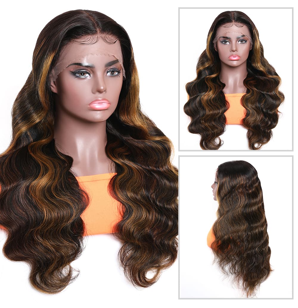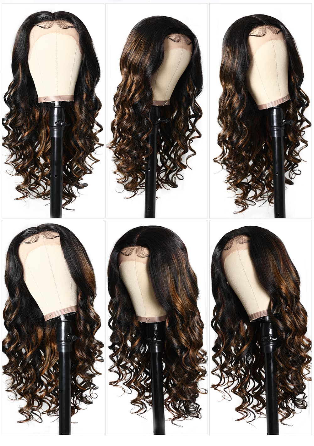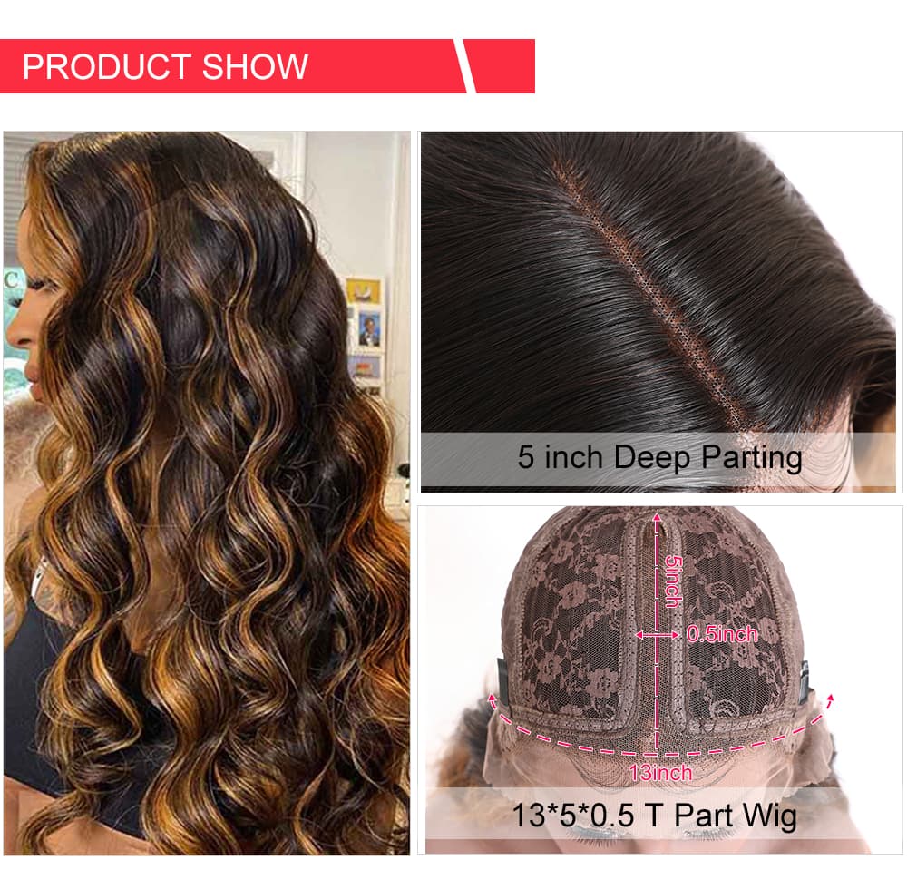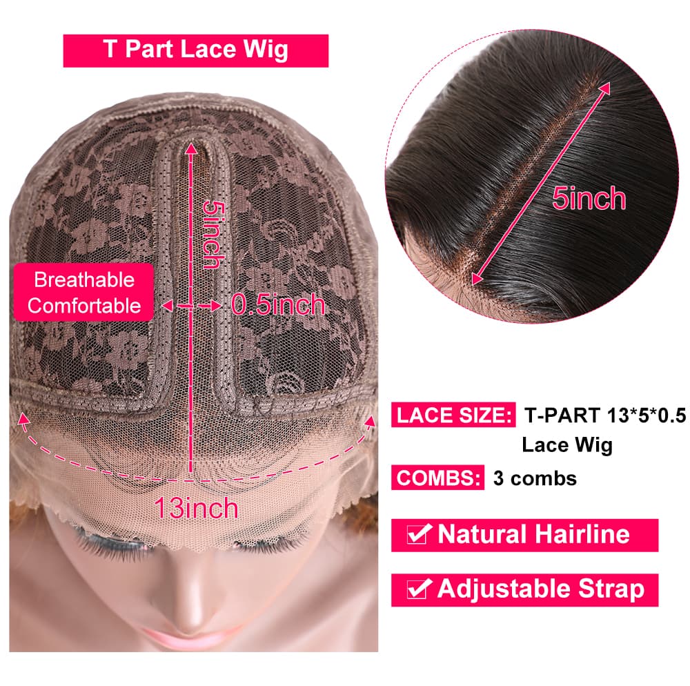 Incolorwig 18 Inch #FB30 Highlight Body Wave T Part Wig Natural Black Short Curly Wigs Pixie Cut Wig Bogo Free