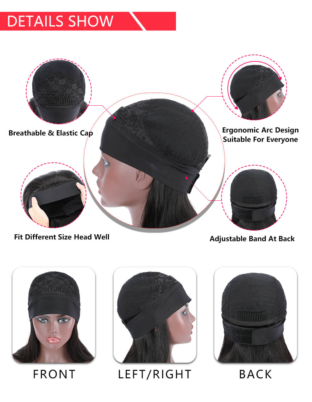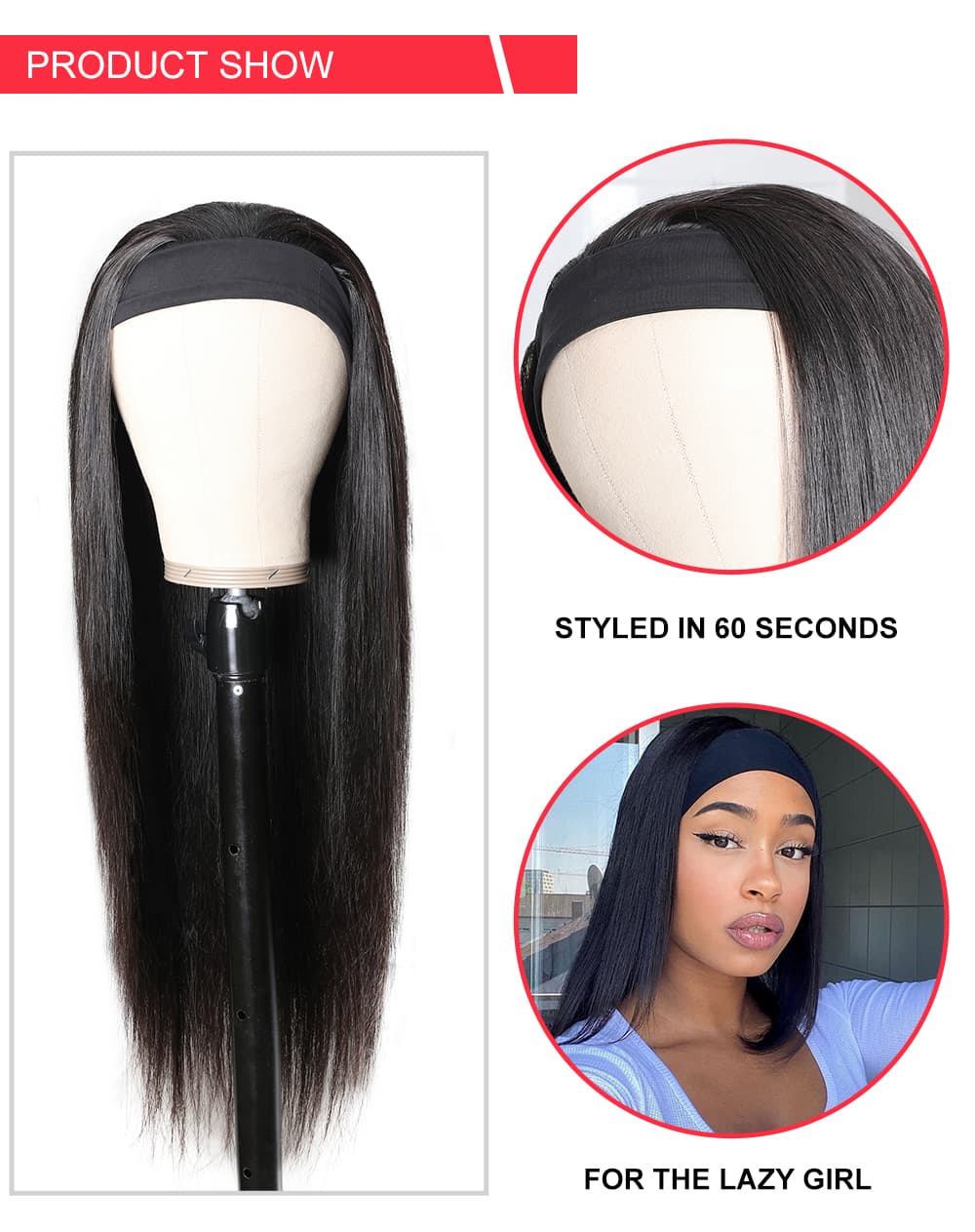 | Feature | Pre plucked, natural hairline, Glueless, Baby Hair Around |