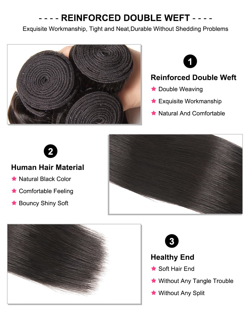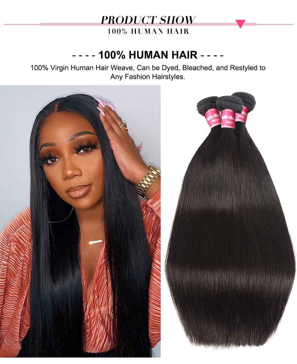 Incolorwig 3 Bundles Deals Brazilian Straight Hair 100% Unprocessed Virgin Hair Weave 8-30 Inch