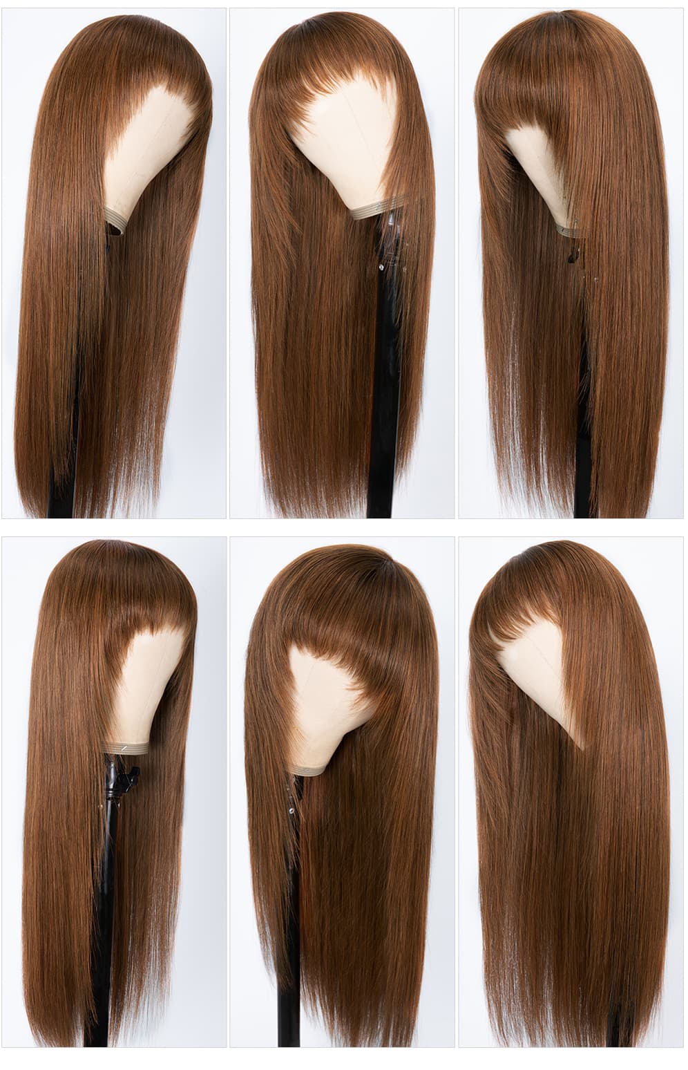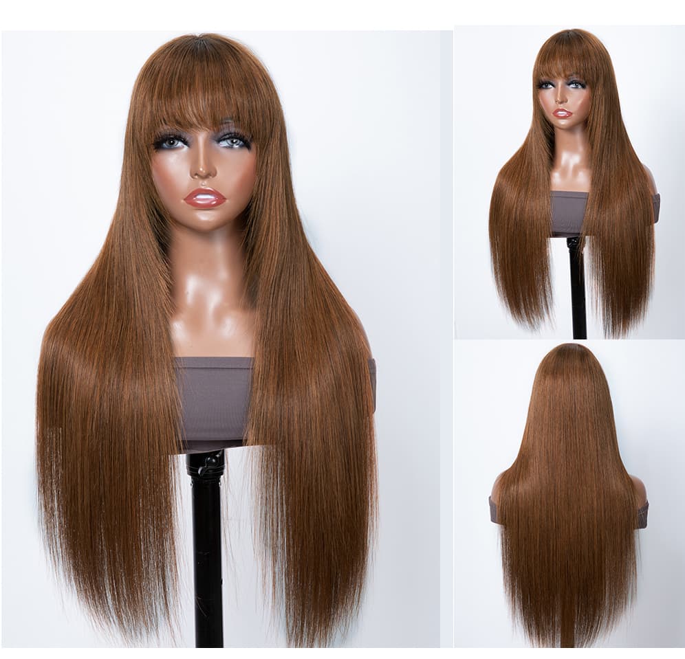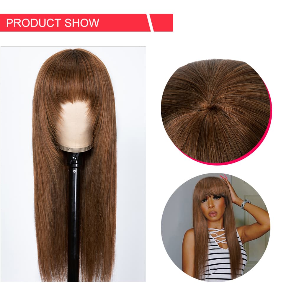 | Meta Keywords | Glueless Wig with Bangs, #4 Colored Wigs, Straight Hair Machine Made Wig |