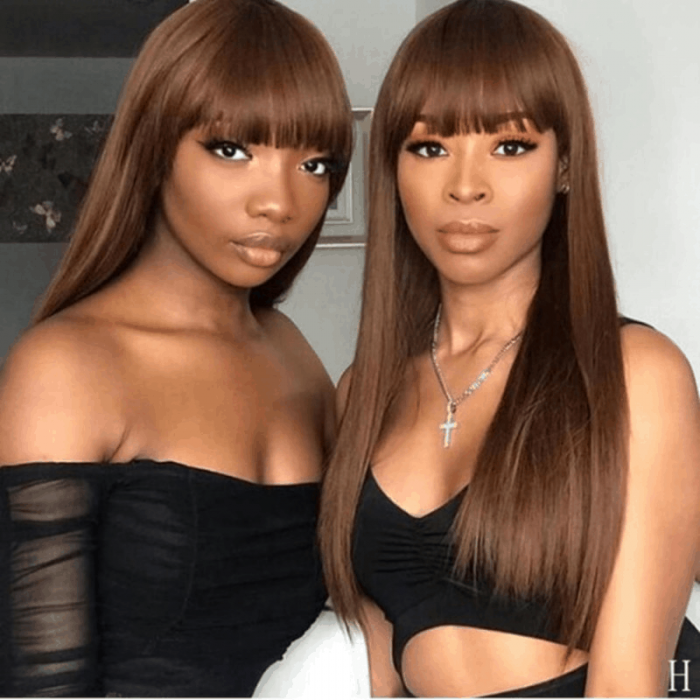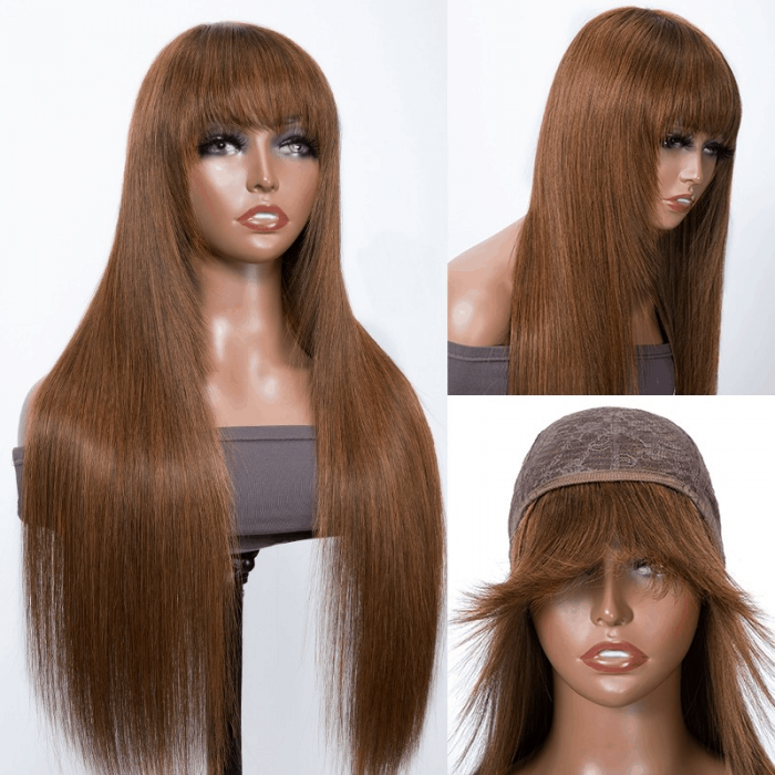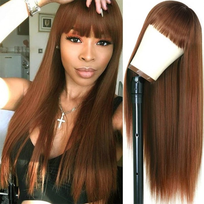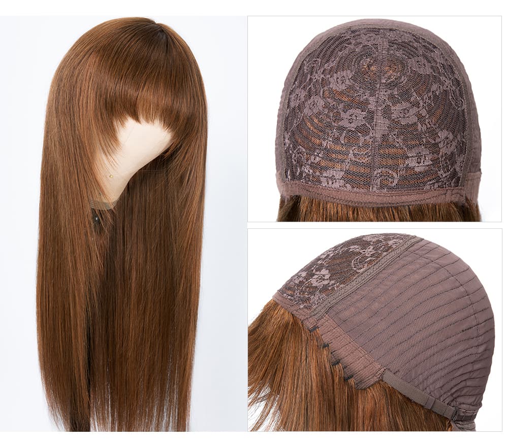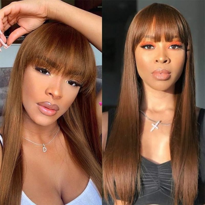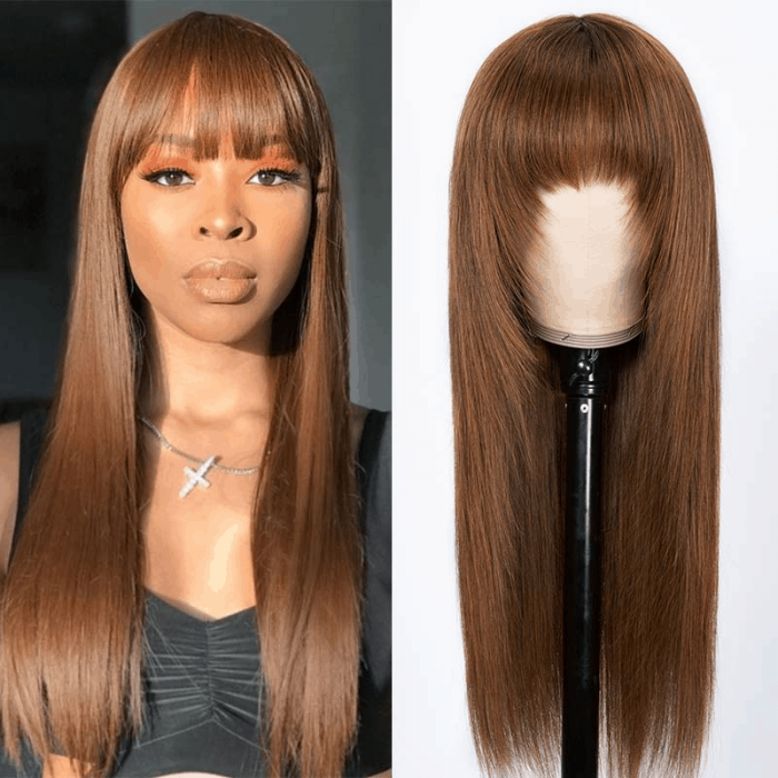 | Meta Keywords | Glueless Wig with Bangs, #4 Colored Wigs, Straight Hair Machine Made Wig |
