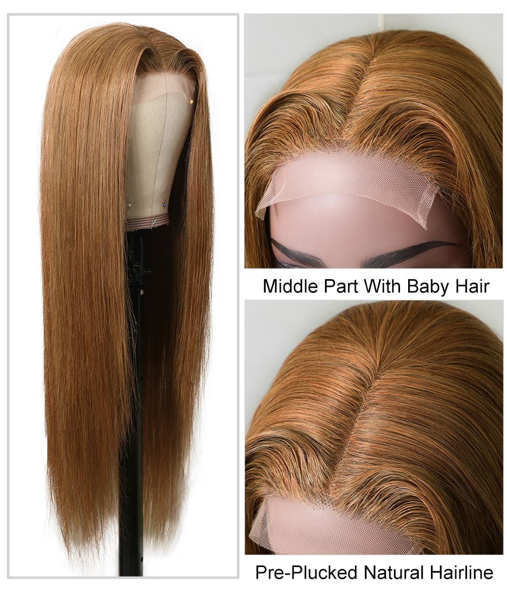 Incolorwig Updated Fall Color Wigs Straight Human Hairline Middle Lace Part Wig 150% Density