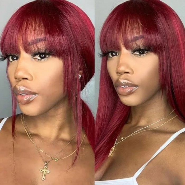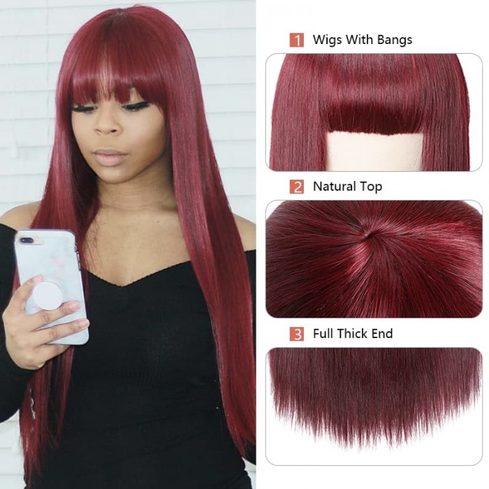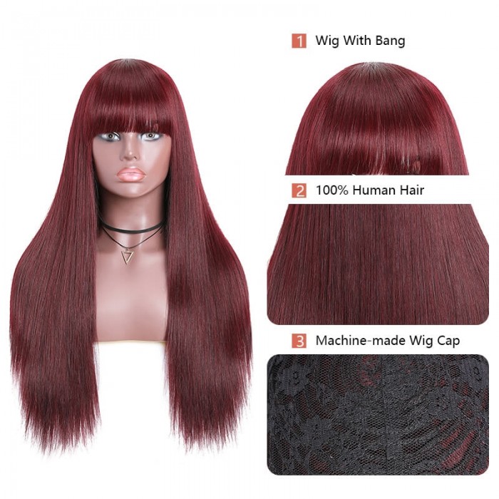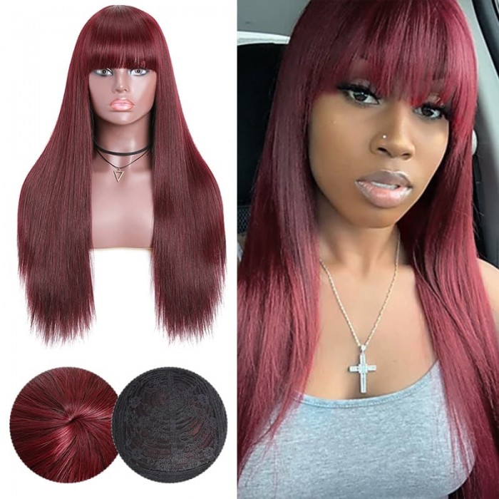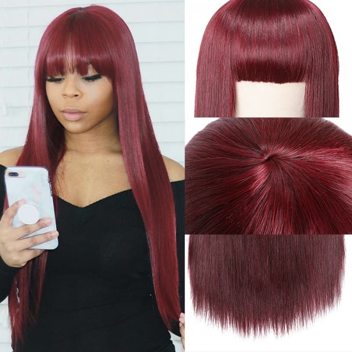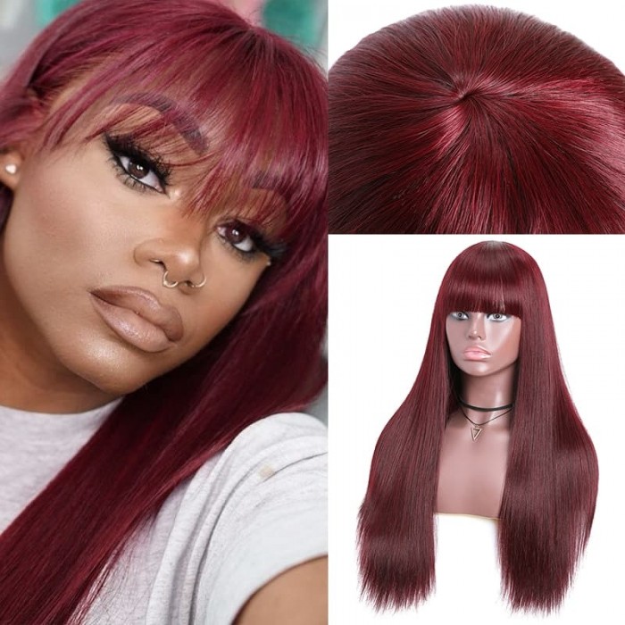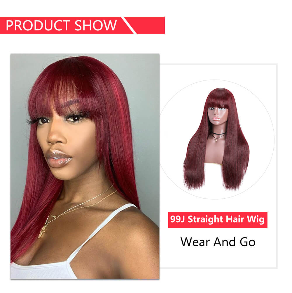 | Meta Keywords | basic cap wigs,straight hair wigs with bangs,no lace wigs,99j straight hair wig,Colored Wigs |