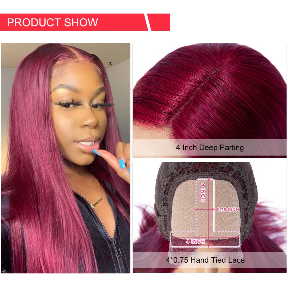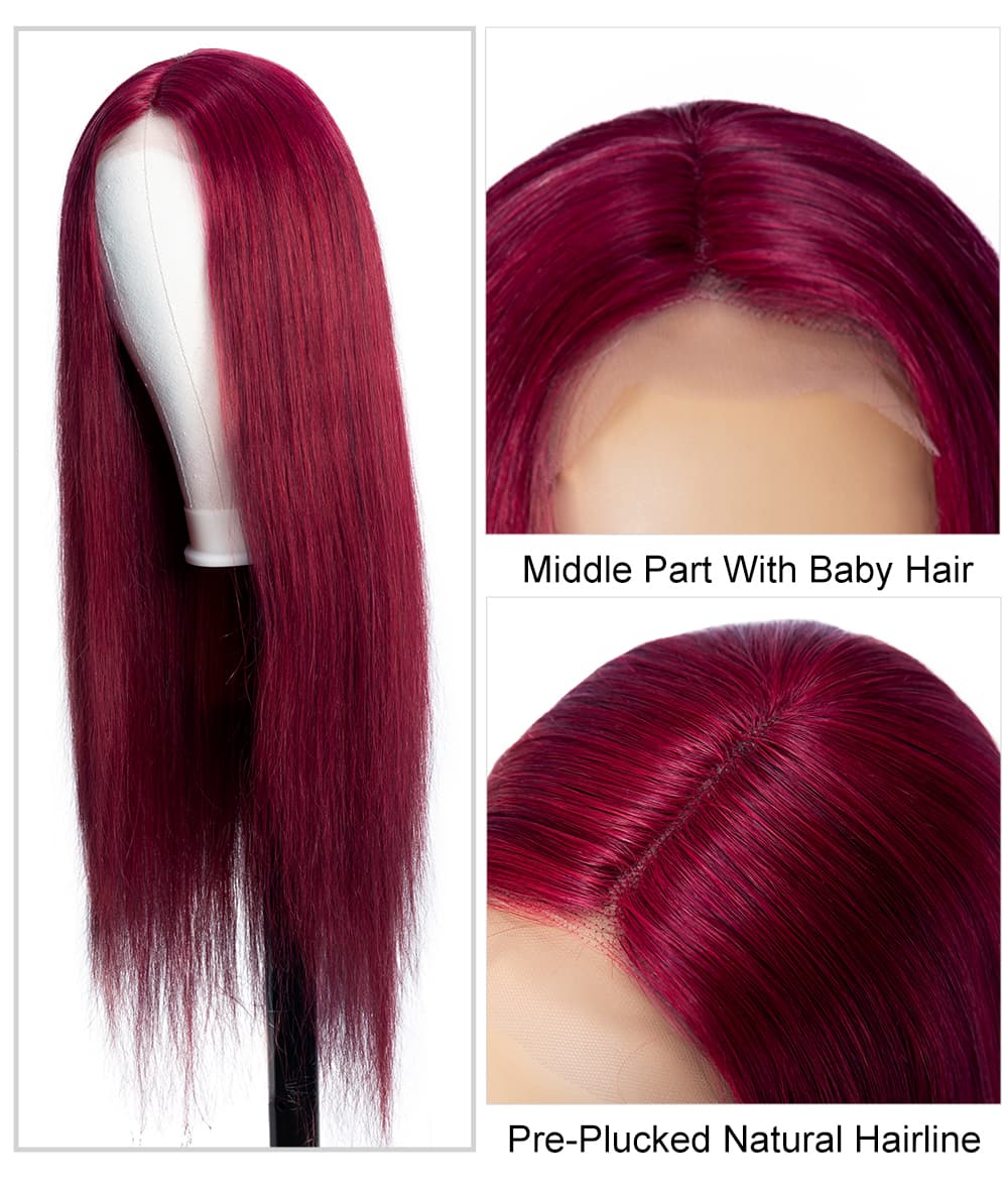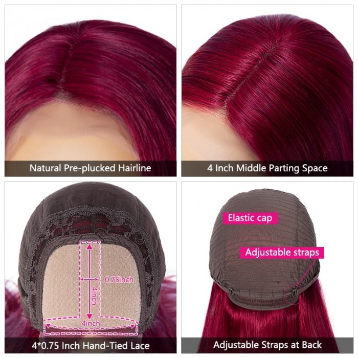 | Meta Keywords | Burgundy Hairline Lace Part Wig, Wine Red Wig, 150% Density Middle Lace Part Wigs |