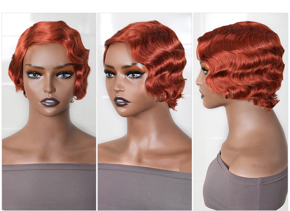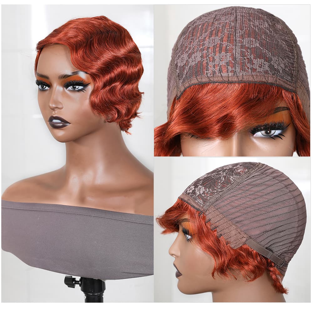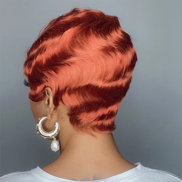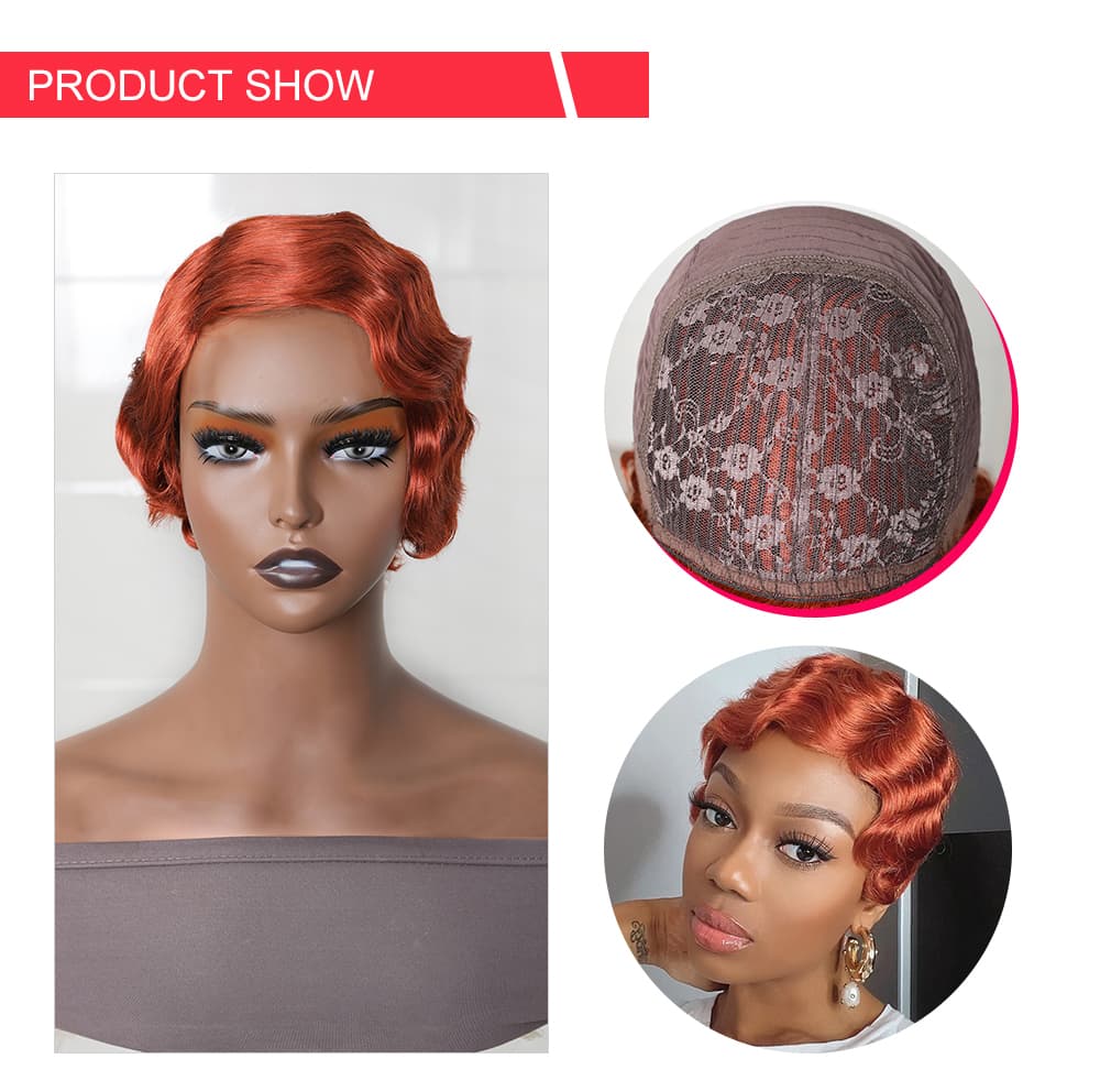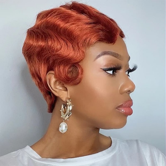 | Meta Keywords | Flaming Orange Pixie Cut Short Wig, 150% Density Machine Made Wig, Finger Wave Bob Wig |
