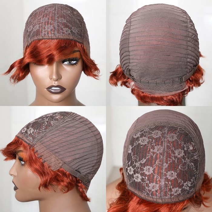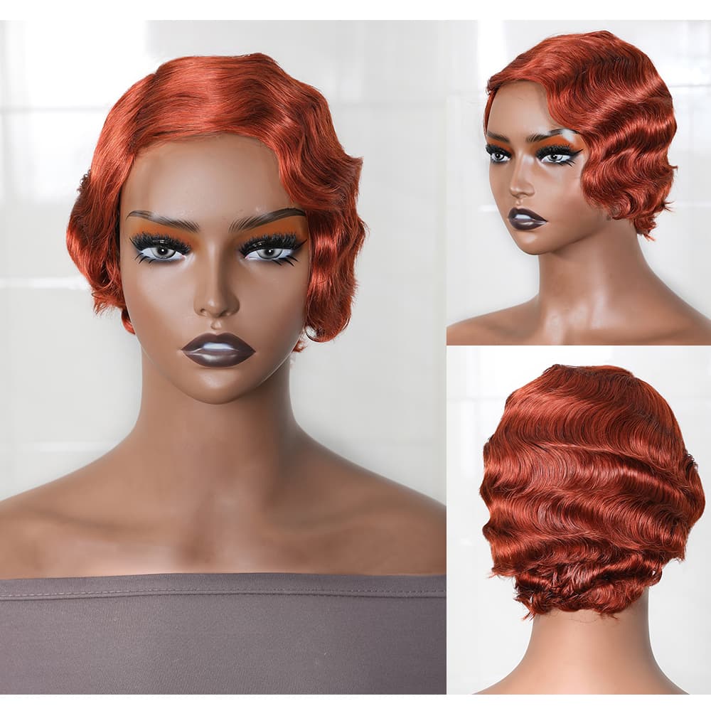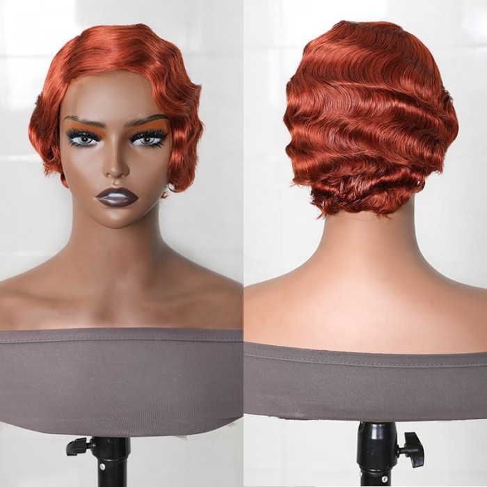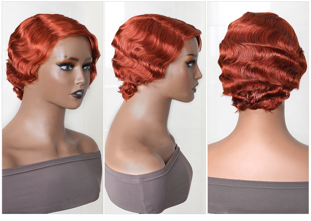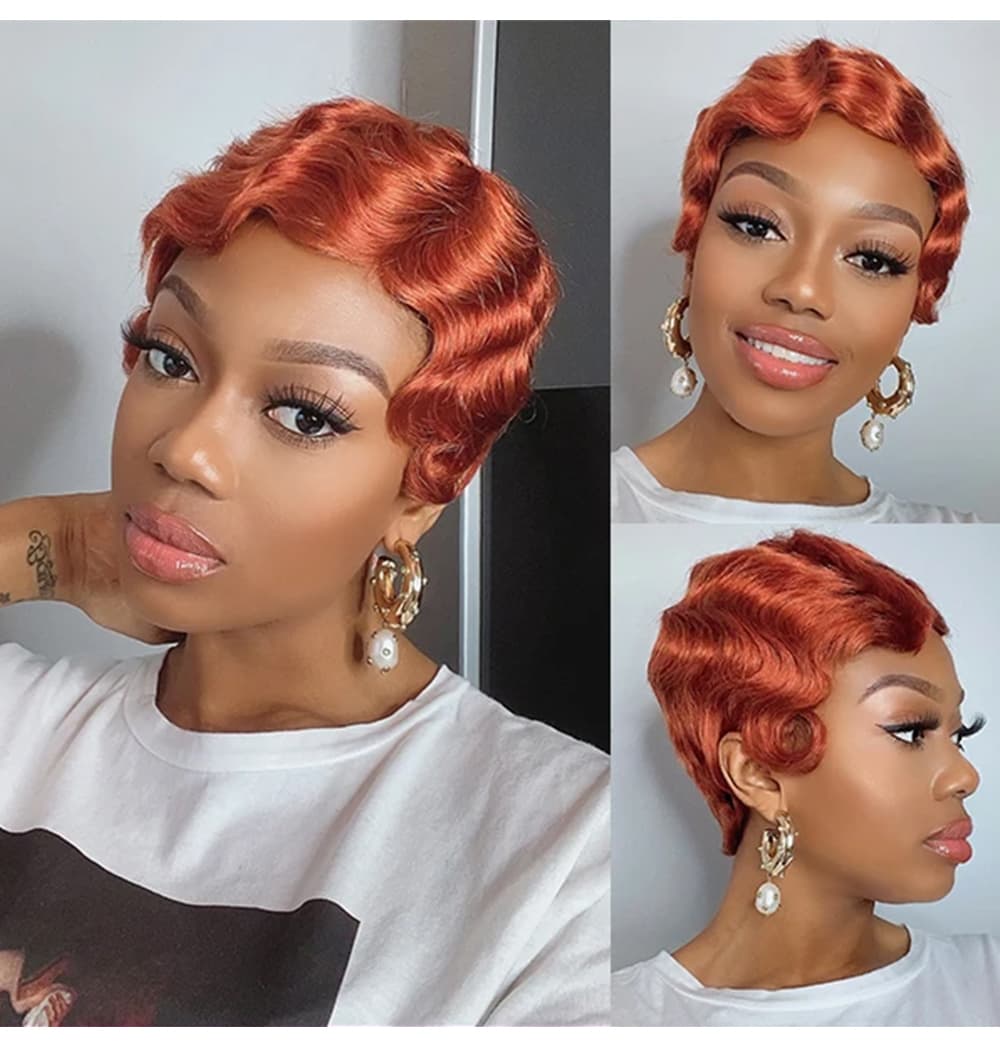 | Meta Keywords | Flaming Orange Pixie Cut Short Wig, 150% Density Machine Made Wig, Finger Wave Bob Wig |