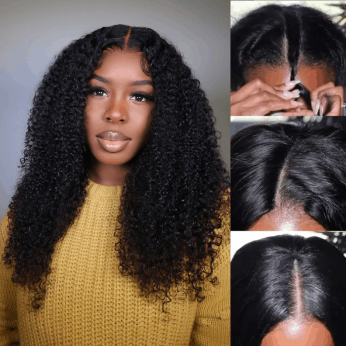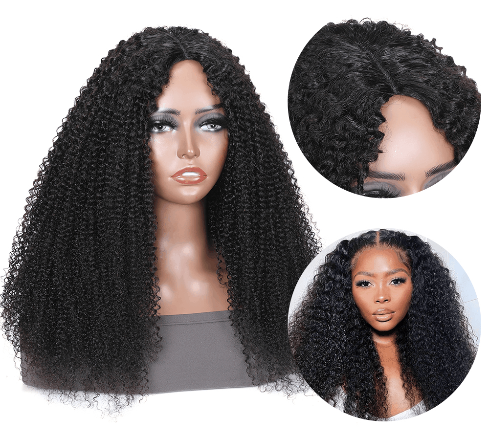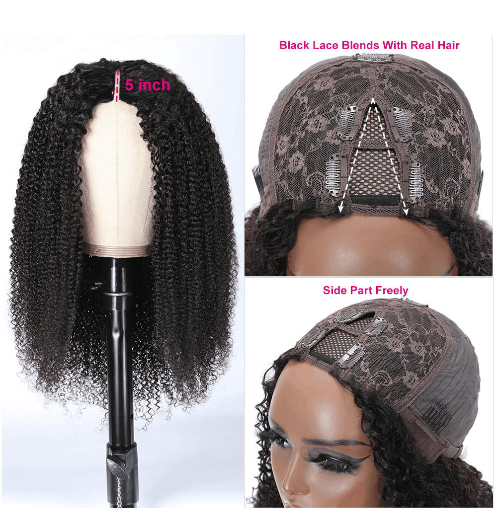 Incolorwig Glueless Kinky Curly V Part Wigs Real Scalp Human Hair Wig No Leave Out U Part Wig