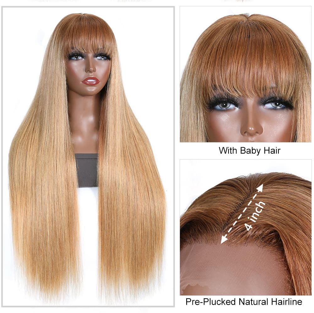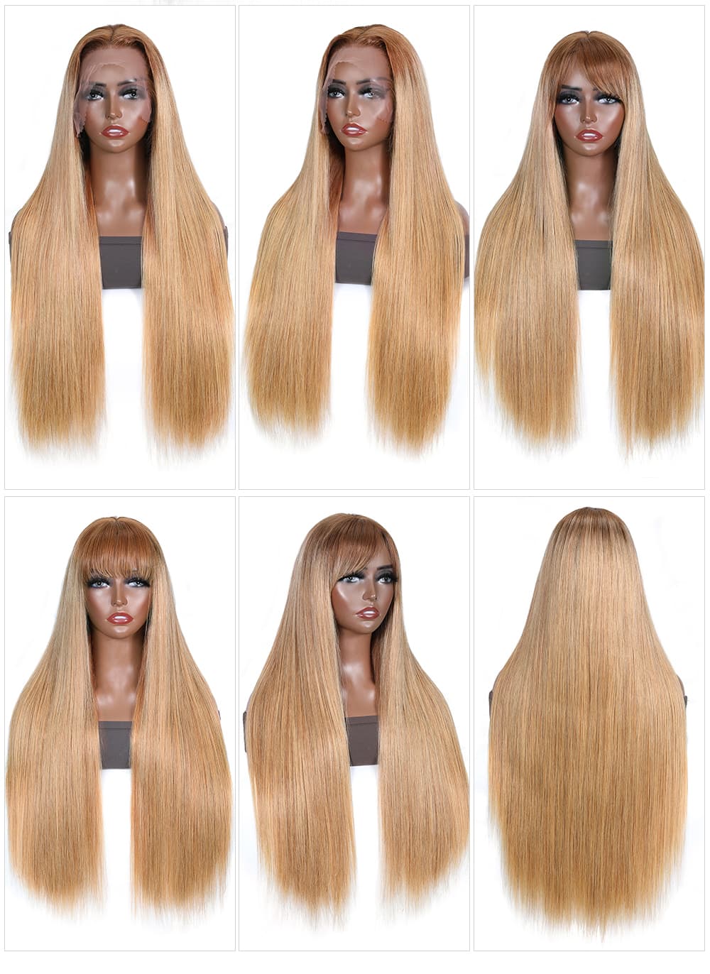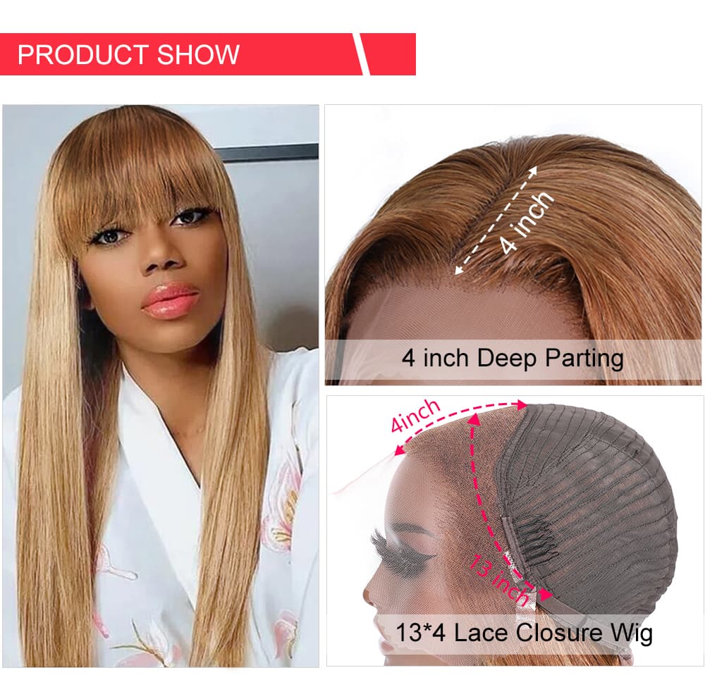 | Meta Keywords | Honey Brown Ombre Color Wig, 13*4 Transparent Lace Front Wig, Straight Hair Wig With Bangs |