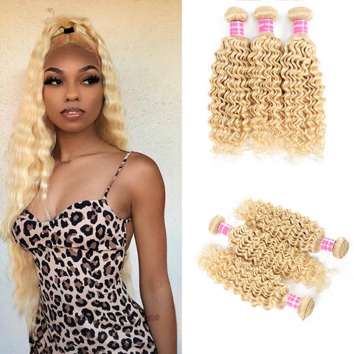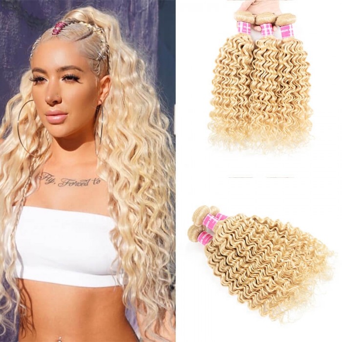 Incolorwig #613 Blonde Deep Wave Brazilian 4 Bundles Hair With 4*4 Lace Closure Free Part For Women Follow Us On Social Media