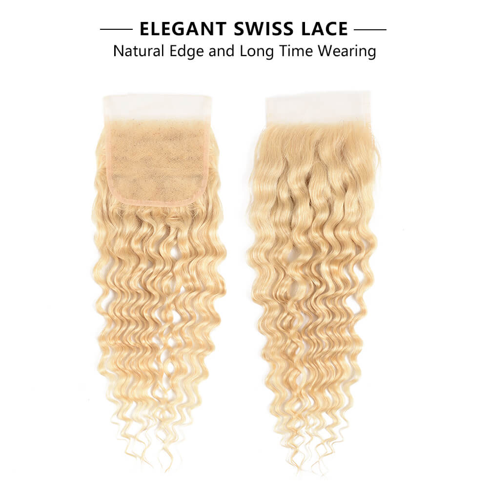 Incolorwig High Quality Malaysian Human Hair #613 Blonde Deep Wave 3 Bundles Hair Weave With 4*4 Lace Closure