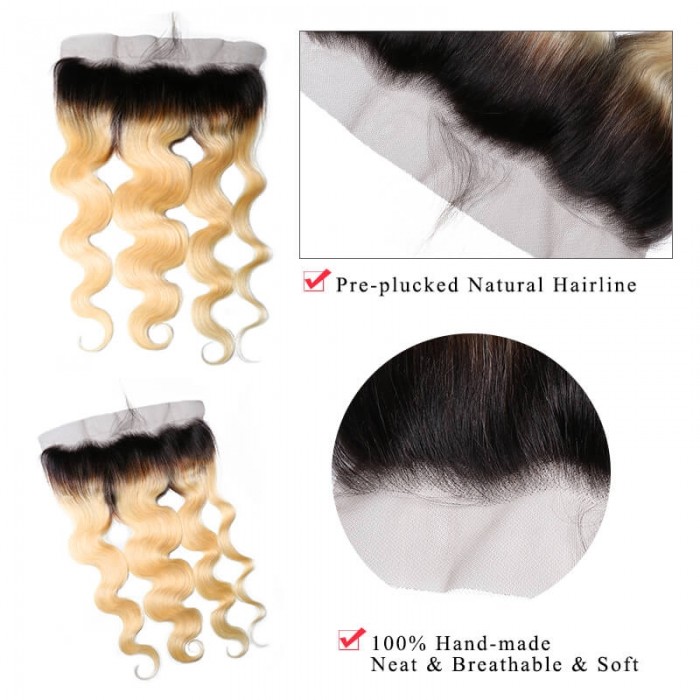 Incolorwig Malaysian Human Hair 4 Bundles With 13*4 Free Part Lace Frontal #T1B613 Ombre Color Body Wave Hair Combinaiton
