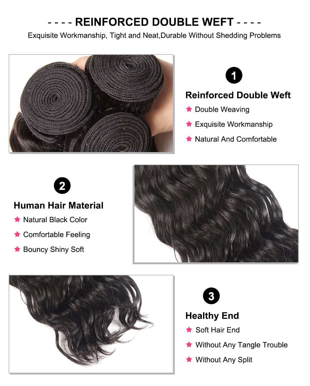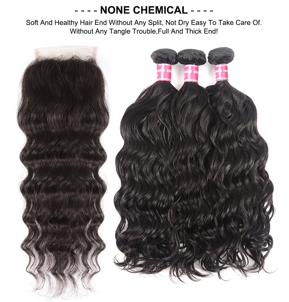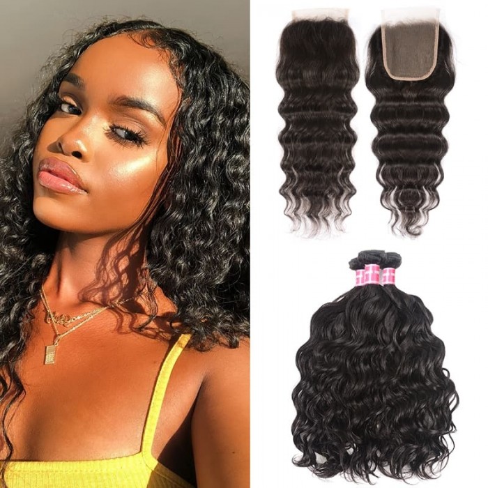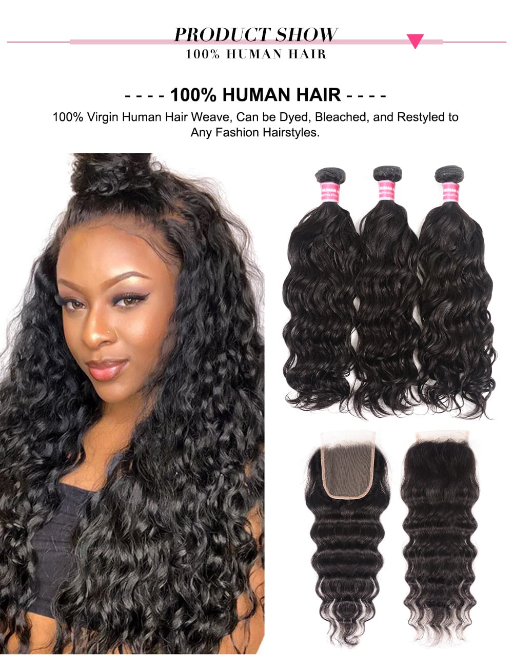 Incolorwig Natural Wave Virgin Hair Bundles 3 Bundles With Closure 100% Unprocessed Human Hair