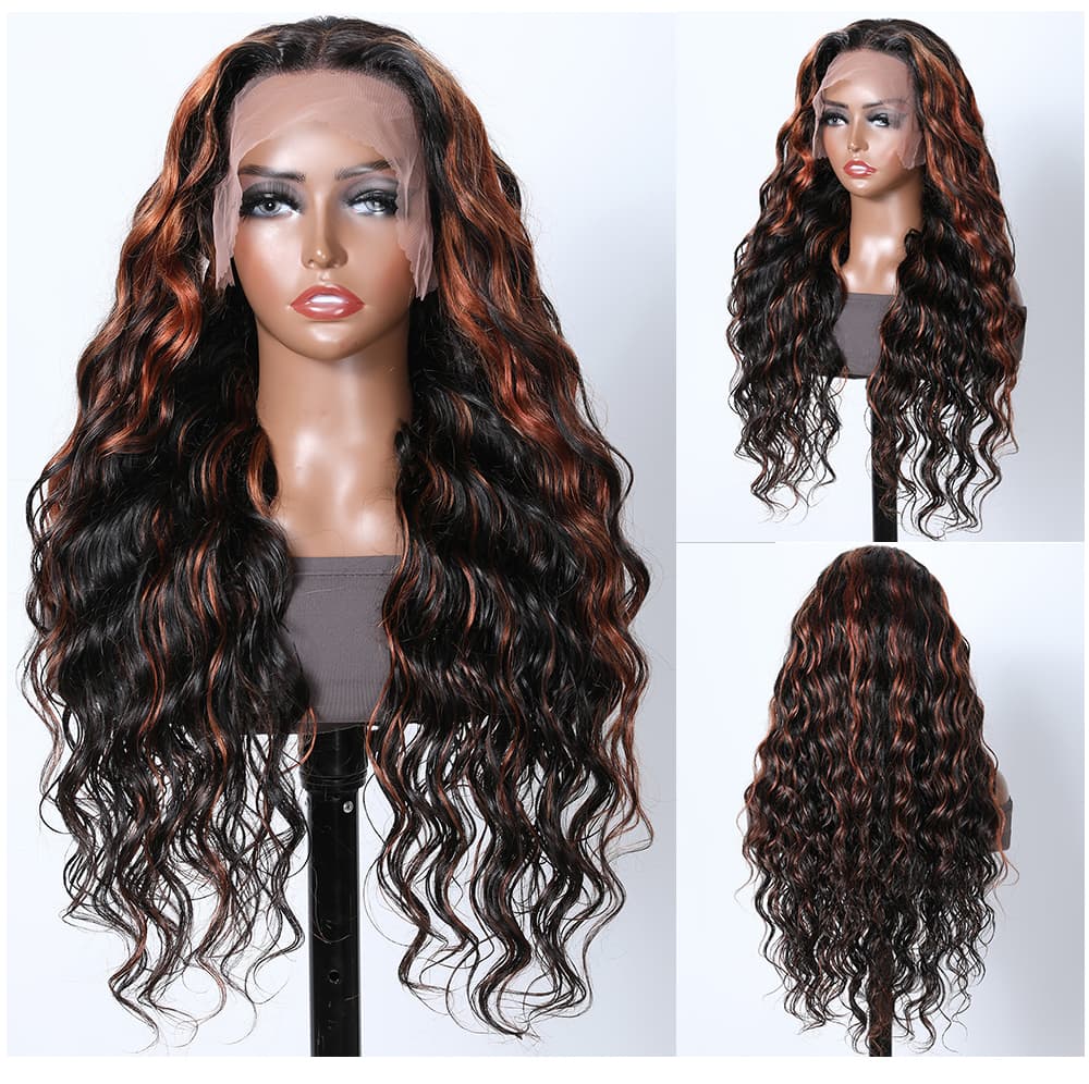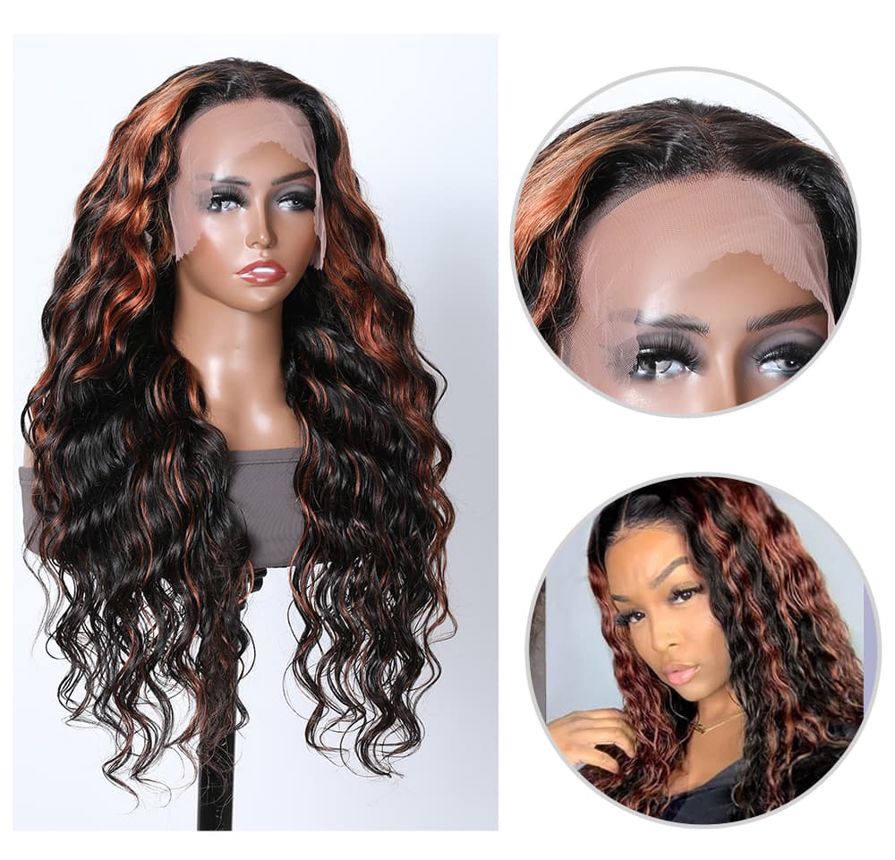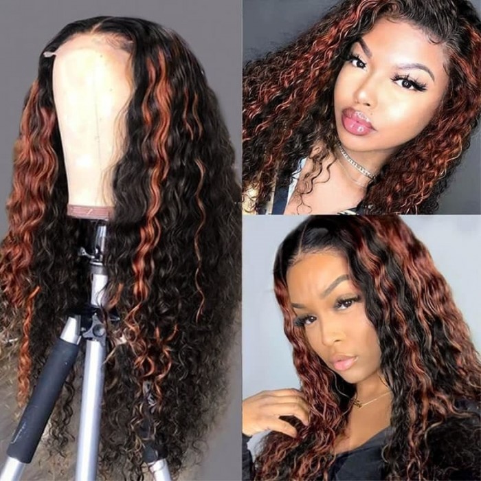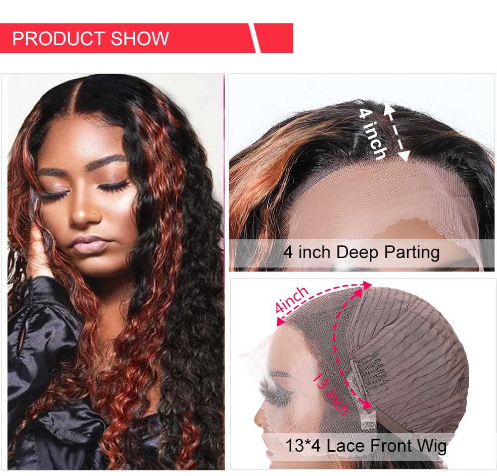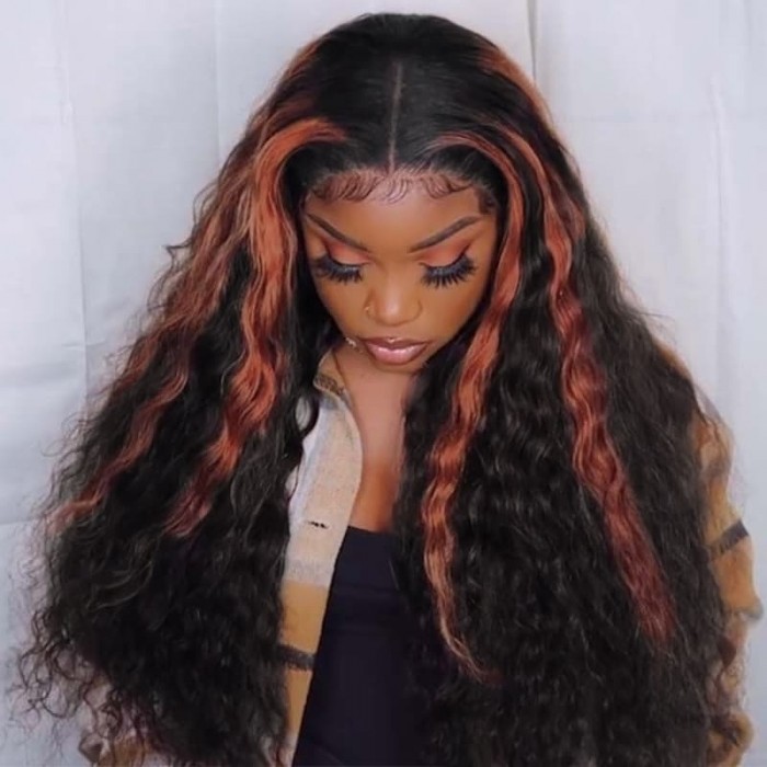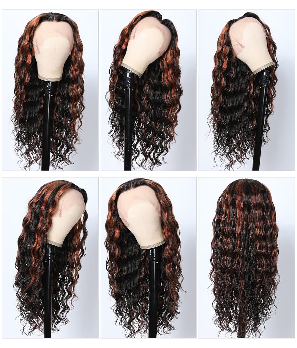 | Meta Keywords | Ombre 13x4 Deep Wave Wigs, Natural Color With Copper Highlight Wigs, Best #TLN350 Colored Wigs |