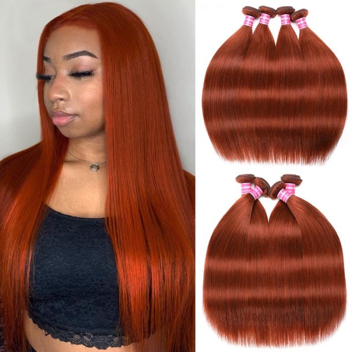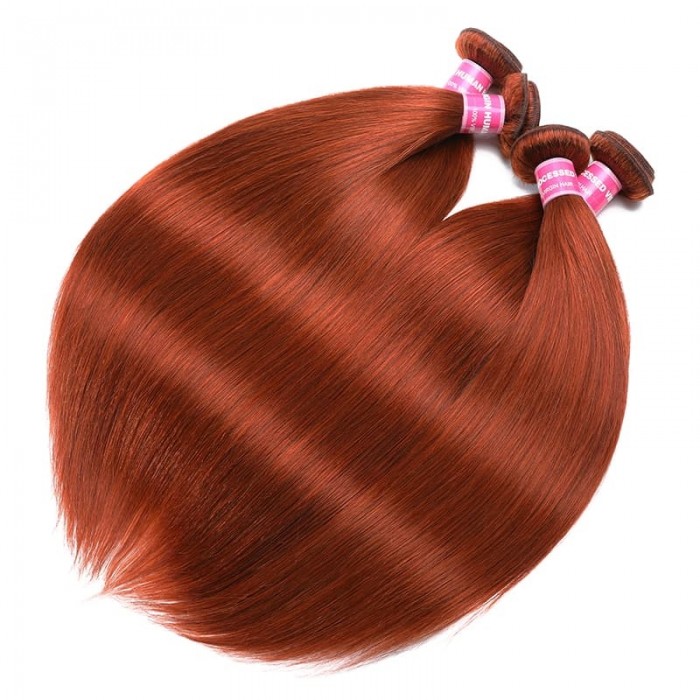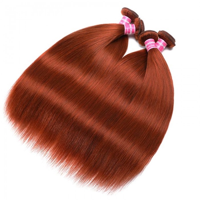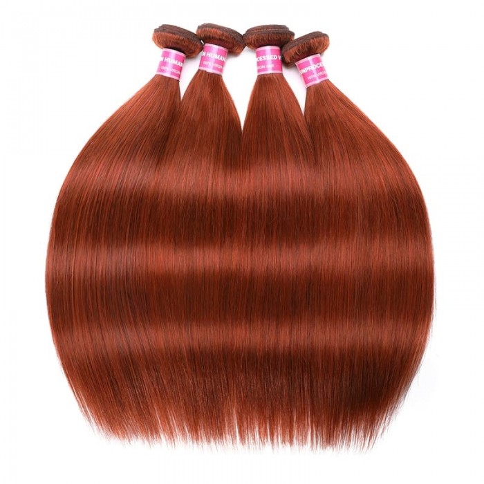 Incolorwig Peruvian 4 Bundles Human Hair Weave #350 Ginger Hair Weave Straight Hair