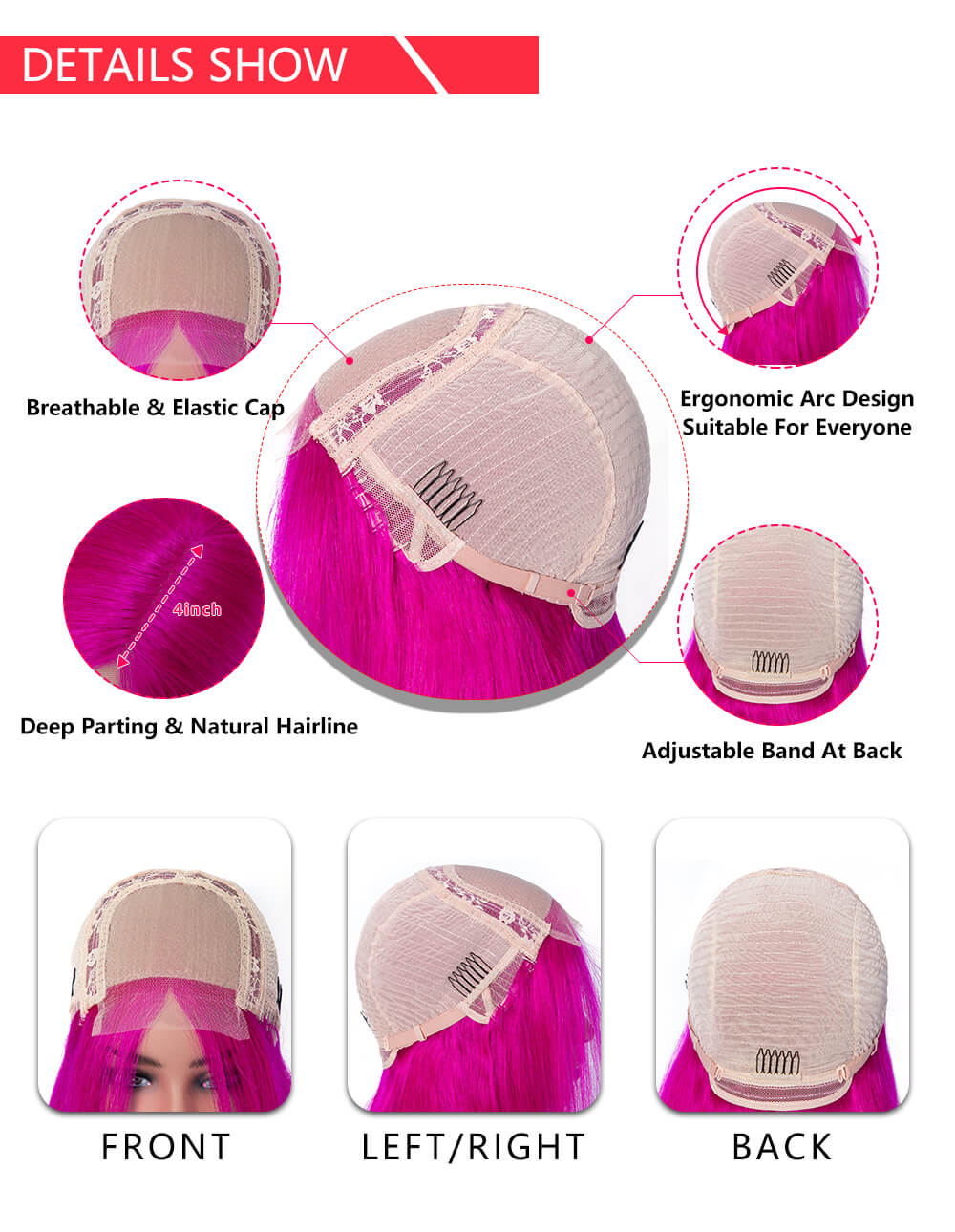 | Meta Keywords | Rose Red Color Wig, Hairline Lace Part Wig, 150% Density Lace Hair Wigs |