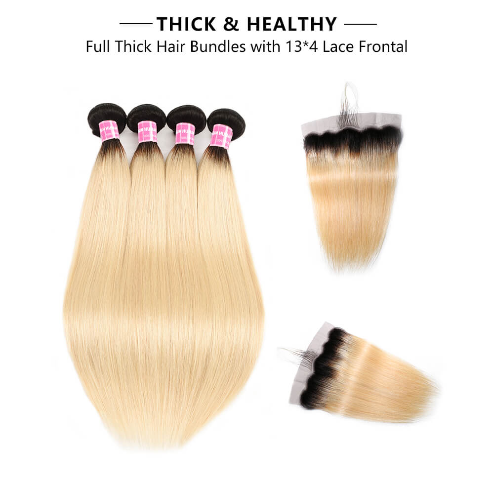 Incolorwig #T1B613 Ombre Color Staight Malaysian 4 Bundles Hair With 13*4 Free Part Lace Frontal