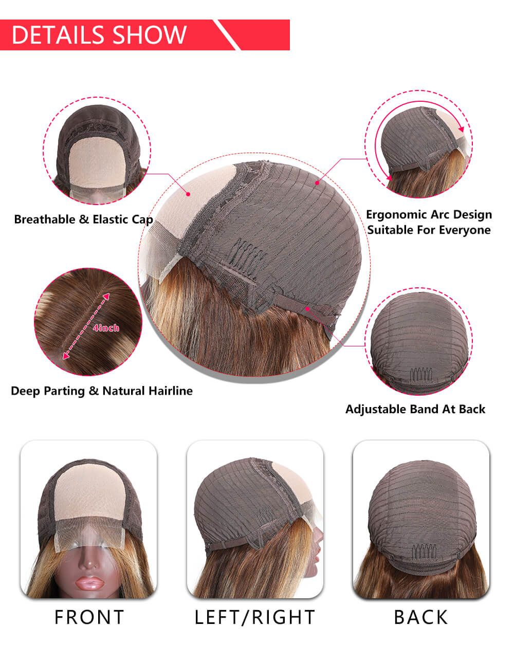 | Feature | Pre plucked, natural hairline, Glueless, Baby Hair Around |