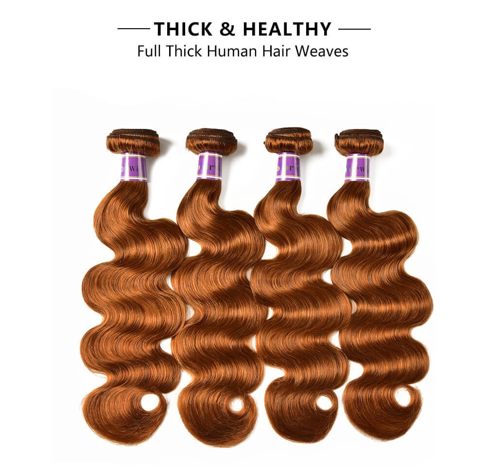 Incolorwig Virgin Brazilian #30 Dark Brown Body Wave 4 Bundles Human Hair Weave