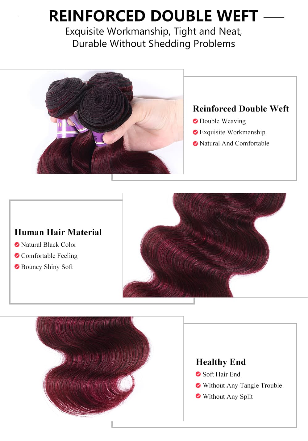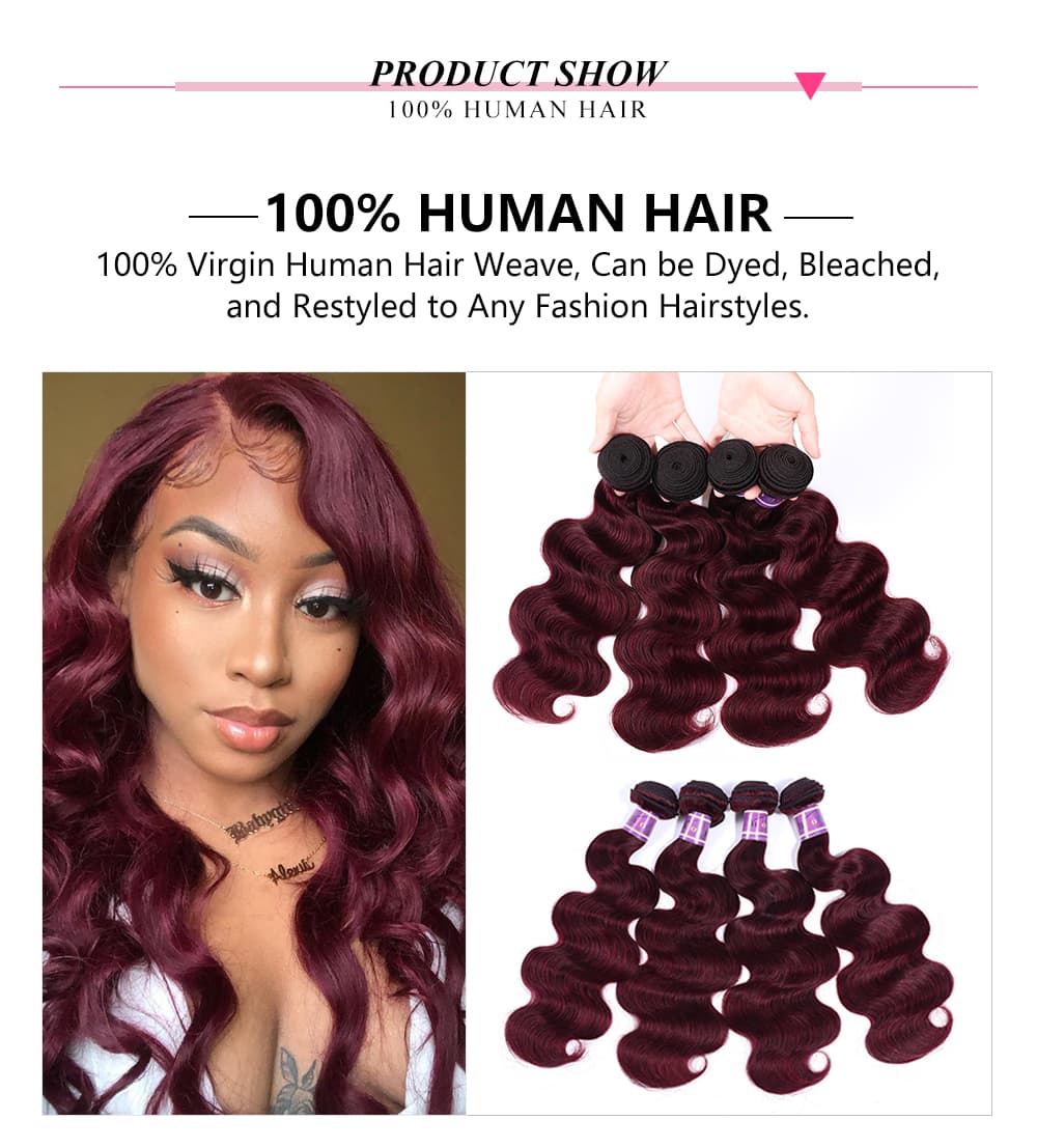 | Meta Keywords | Brazilian Remy Human Hair Weave, 100% Human Hair, 4 Bundles Weave, Cheap Human Hair, #99J Burgundy Body Wave Human Hair |