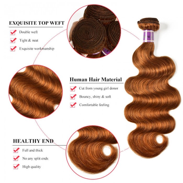 Incolorwig Virgin Peruvian #30 Dark Brown Body Wave 4 Bundles Human Hair Weave