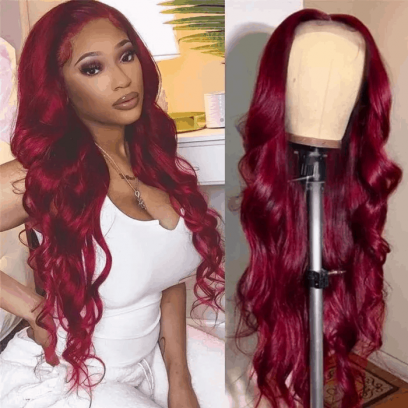 +Free Wig 16Inch Burgundy Wigs 150% Density Body Wave Hair Wig Red Color Hairline Lace Part WigPrice:$0.00