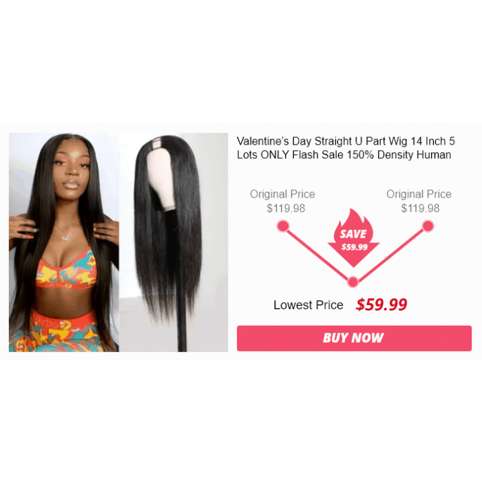 Valentine’s Day Straight U Part Wig 14 Inch 5 Lots ONLY Flash Sale 150% Density Human Hair Wigs